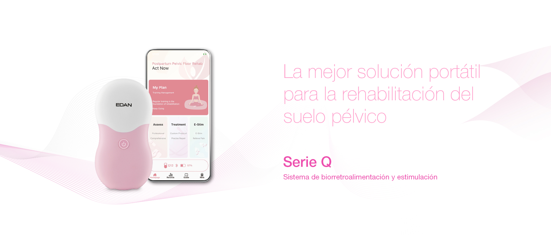 de rehabilitación del suelo pélvico y postparto que se utiliza con una APP llamada EdanQ en el smartphone.