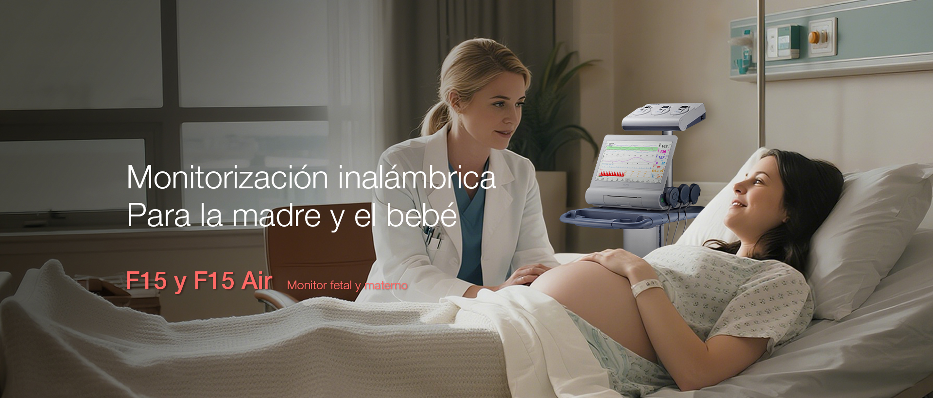 F15 se presenta a las obstetras con la más profunda sinceridad para aportar a las clínicas el flujo de trabajo más eficaz, como la activación automática de la sonda y la carga inalámbrica, para que el proceso de monitorización esté siempre al alcance de la mano