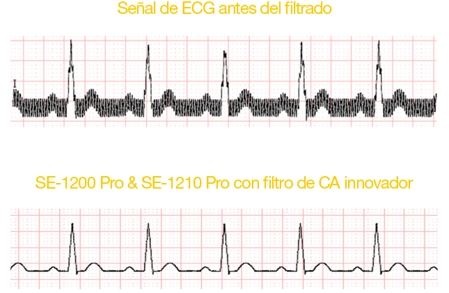 La innovadora tecnología de filtro de CA autoadaptativo garantiza una calidad de señal de ECG óptima en entornos clínicos reales, especialmente en entornos extremos con voltaje inestable.