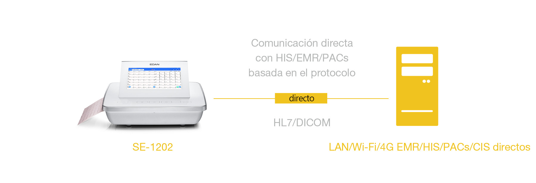Sin necesidad de software de terceros, el SE-1202 puede acceder directamente a los sistemas del hospital mediante HL7/DICOM.