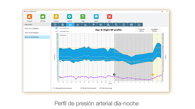 MAPA de Edan. Con un diseño elegante, el SA-10 está diseñado para prevenir la hipertensión de bata blanca, la hipertensión enmascarada y la hipertensión sostenida. Gracias a su potente software de análisis, los profesionales sanitarios gestionarán fácilmente los riesgos cardiovasculares de sus pacientes y tomarán decisiones clínicas con confianza.